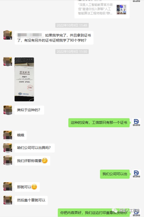 最近一段时间,有好几家企业都在咨询我们关于工信部的人工智能算法工程师证书,都是用在投标上的,我们这边也推荐了拿证的学员和使用证书的企业去沟通。