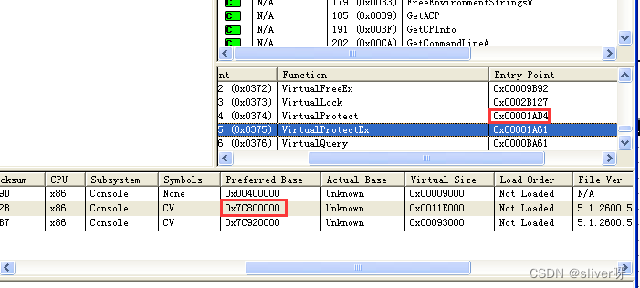 可以看到VirtualProtect()大概在0x7C800000+0x00001AD4处。