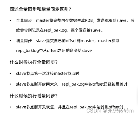 其实Master和slave都有一个Replication Id,简称replid,若id一致说明是已经建立过连接了,不需要进行全量同步,则需要进行增量同步。