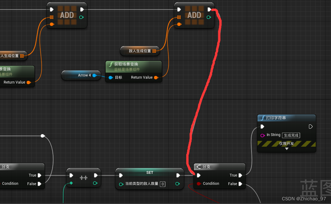 最后将下方标注的线连上,整个创建敌人的环节就通了