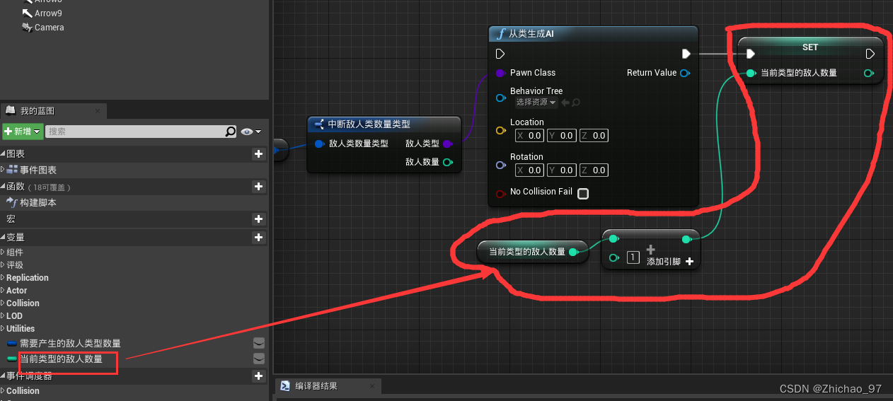由于从类生成AI这个节点还需要设置生成的敌人的位置和旋转值,因此现在我们还需要获取它