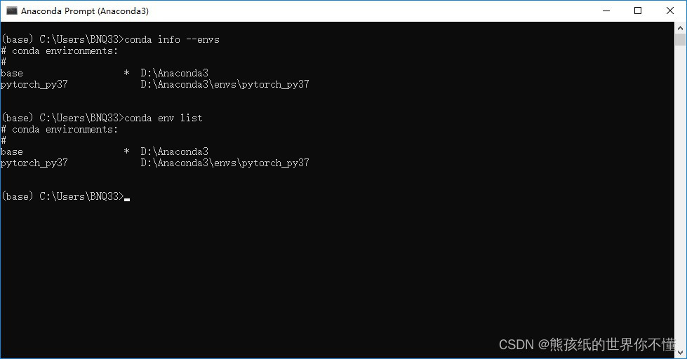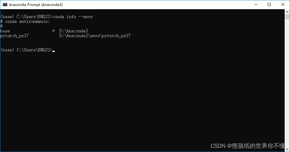 2.查看创建的虚拟环境: conda info --envs