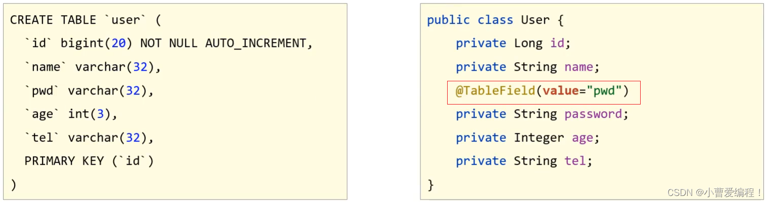 public class User { private Long id; private String name; private String password; private Integer age; private String tel; //setter...getter...toString方法略 }步骤7:创建Dao接口