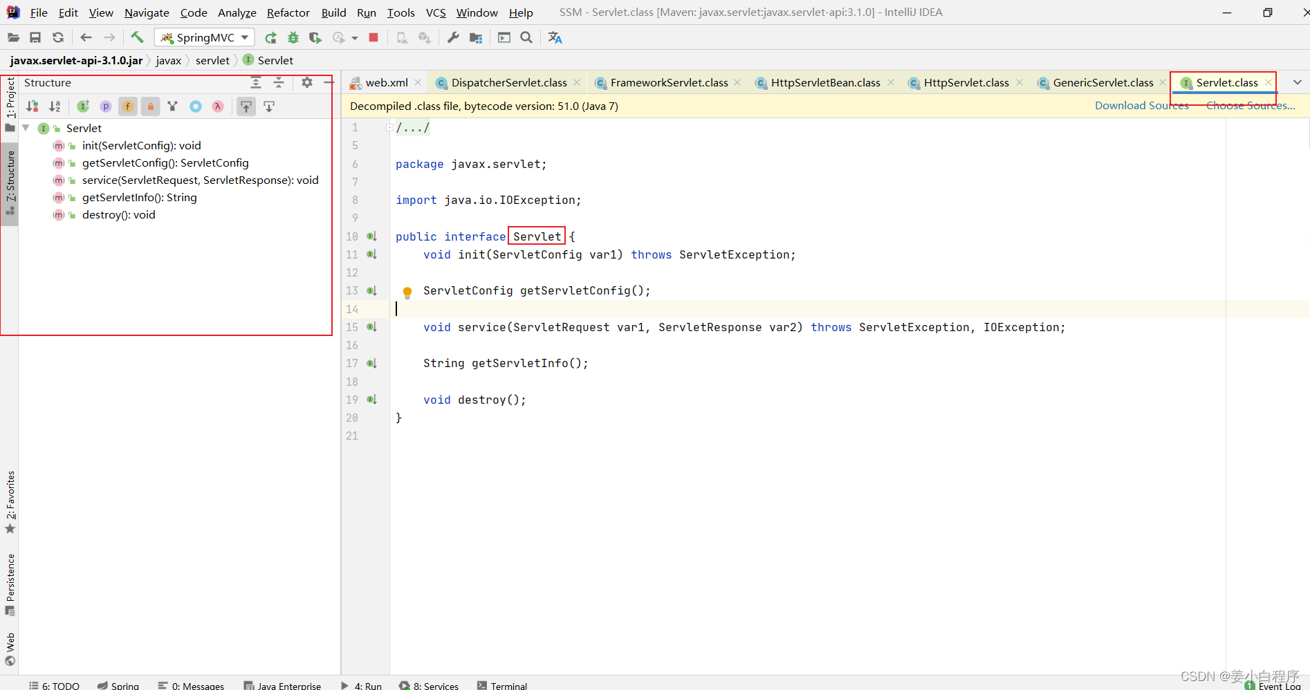 单击DispatcherServlet 按住Ctrl+鼠标左健
