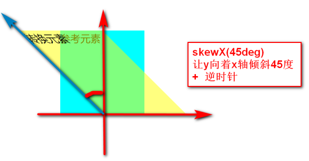 skewX(ndeg) 定义沿着 X 轴的 2D 倾斜转换。