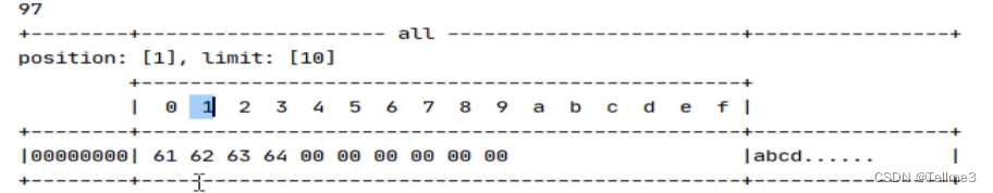 Position在1,limint还是在10(末尾处)(转换为读模式的时候这limit会动到前面的写操作的positon的)