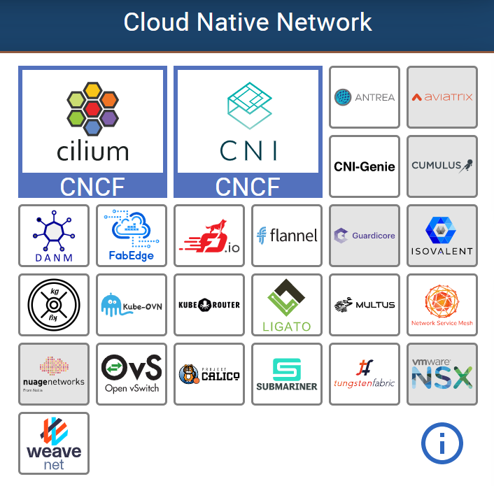 我们在学习容器网络的时候,肯定都听说过 Docker 的 bridge 网络,Vethpair,VxLAN 等术语,从 Docker 到 kubernetes 后,学习了 Flannel、Calico 等主流网络插件,分别代表了 Overlay 和 Underlay 的两种网络传输模式,也是很经典的两款 CNI 网络插件。那么,还有哪些好用的 CNI 插件呢 ? 我们看看 CNCF Landscape: