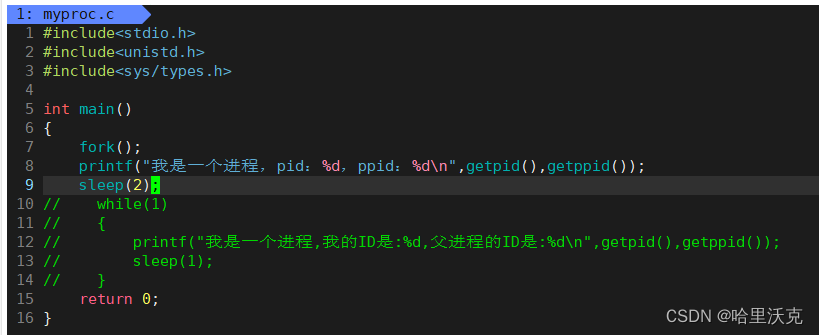 1.首先我们创造了一个一直在while循环的myproc代码,执行该文件后,myproc变成了进程,我们通过管道过滤需要显示的进程:ps ajx | grep “myproc”找到对应进程名字。