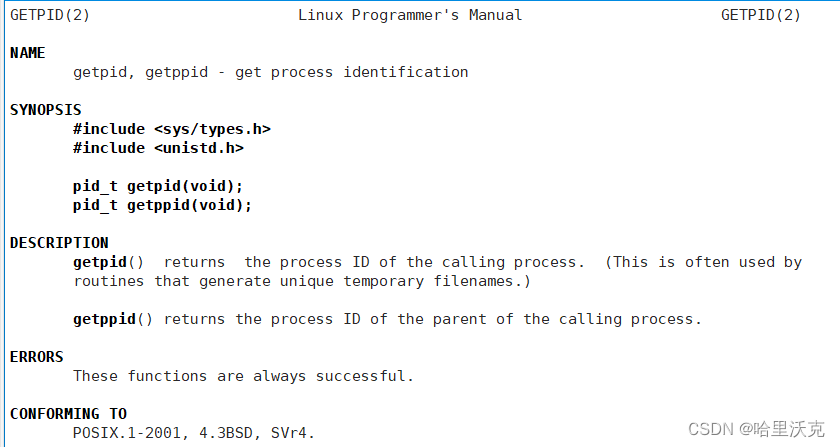 man手册的getpid说明