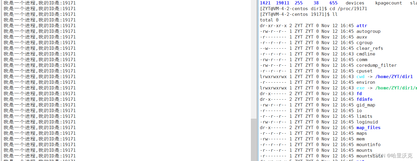 进程存在时,会出现一个pid对应的文件夹放在/proc中