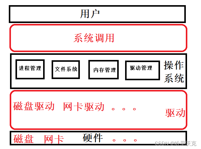 用户操作界面:不过上面的系统调用是不够的,因为调用的函数也需要从二进制语言转化为人能看得懂的语言进行使用,所以用户为了利用系统需要shell、c/c++的库函数等进行执行,也有更加直观的可视化界面通过点击就可调用的工具。