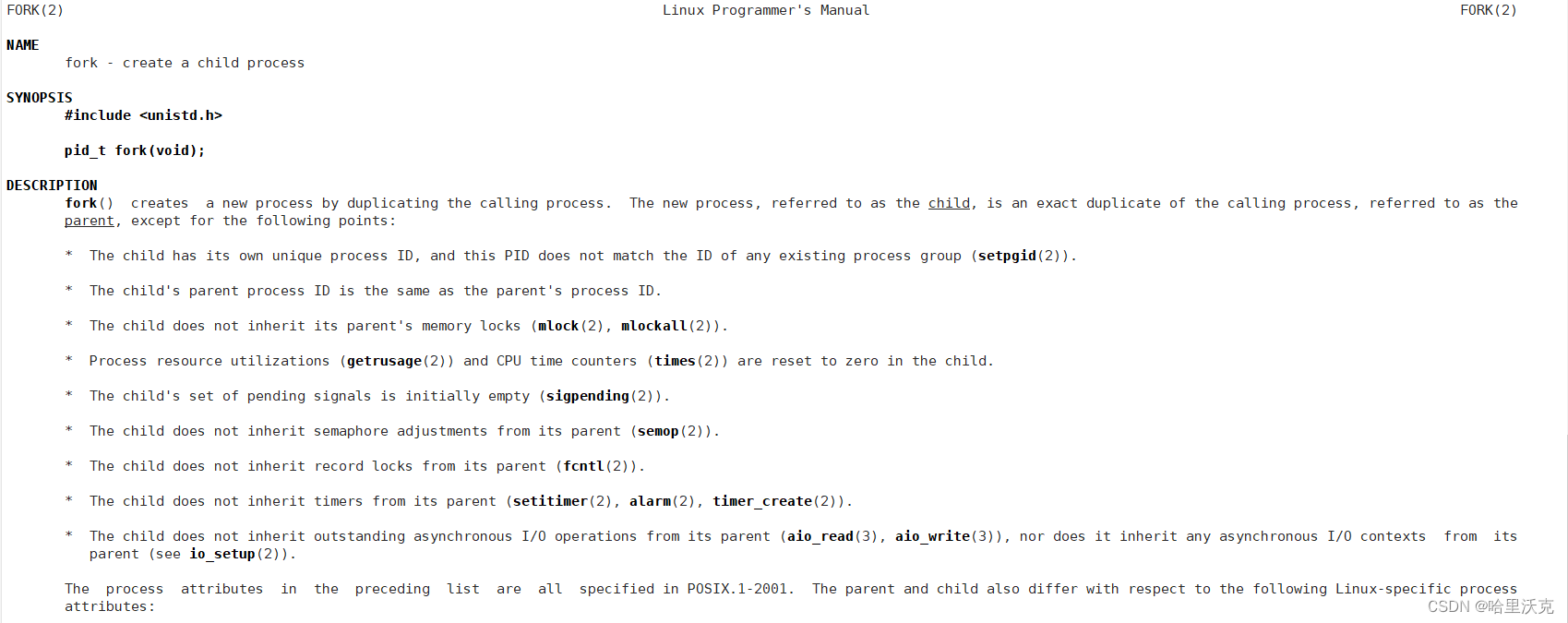 man手册对fork的说明