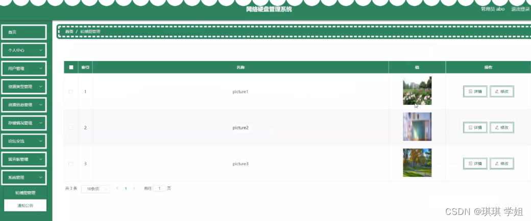 在系统管理页面,管理员可以对轮播图管理、通知公告等功能进行相应操作,如图5-14所示。