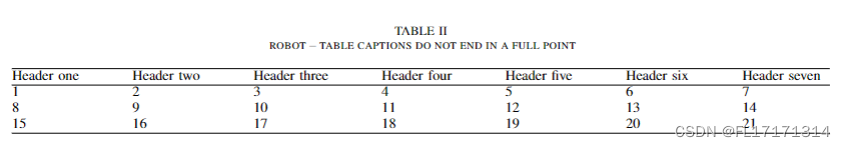 - \caption{\ robot \textendash\ table captions do not end in a full point}