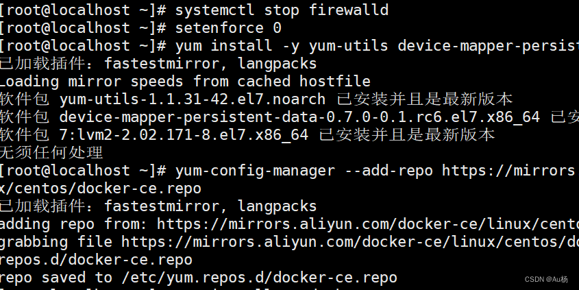 - yum-config-manager --add-repo https://mirrors.aliyun.com/docker-ce/linux/centos/docker-ce.repo