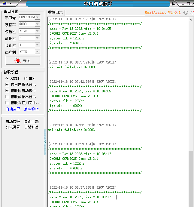 下图是以9600为例,我们可以看出波形和打印均符合我们的预期