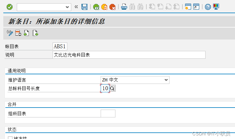 图。 选择账目表为“ABS1”-标准科目表。