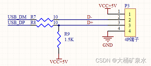 再有就是USB端子部分了,因为整体使用的是USB通信,通过USB连接电脑,软件端使用虚拟串口,与上位机通讯使用的是串口通讯方式,相当于省去了CH340芯片。