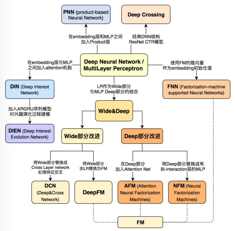 纵观推荐技术的发展史,简单来说就是特征工程自动化的过程,从人工设计特征+LR,到模型实现自动特征交互:如基于LR的自动特征交互组合的因式分解机FM及FFM 以及 GBDT树特征+LR ,到自动提取高层次特征的深度学习模型(DNN)。