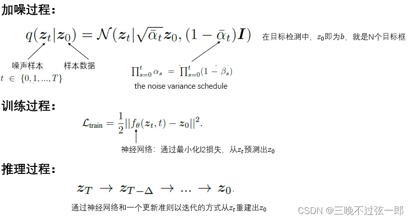Diffusion model. 扩散模型受到非平衡态热力学启发,是一类likelihood-based模型。这些模型以马尔科夫链定义了扩散前馈过程,向样本数据中逐渐添加噪声。前馈的加噪过程,训练过程,推理过程展示如下: