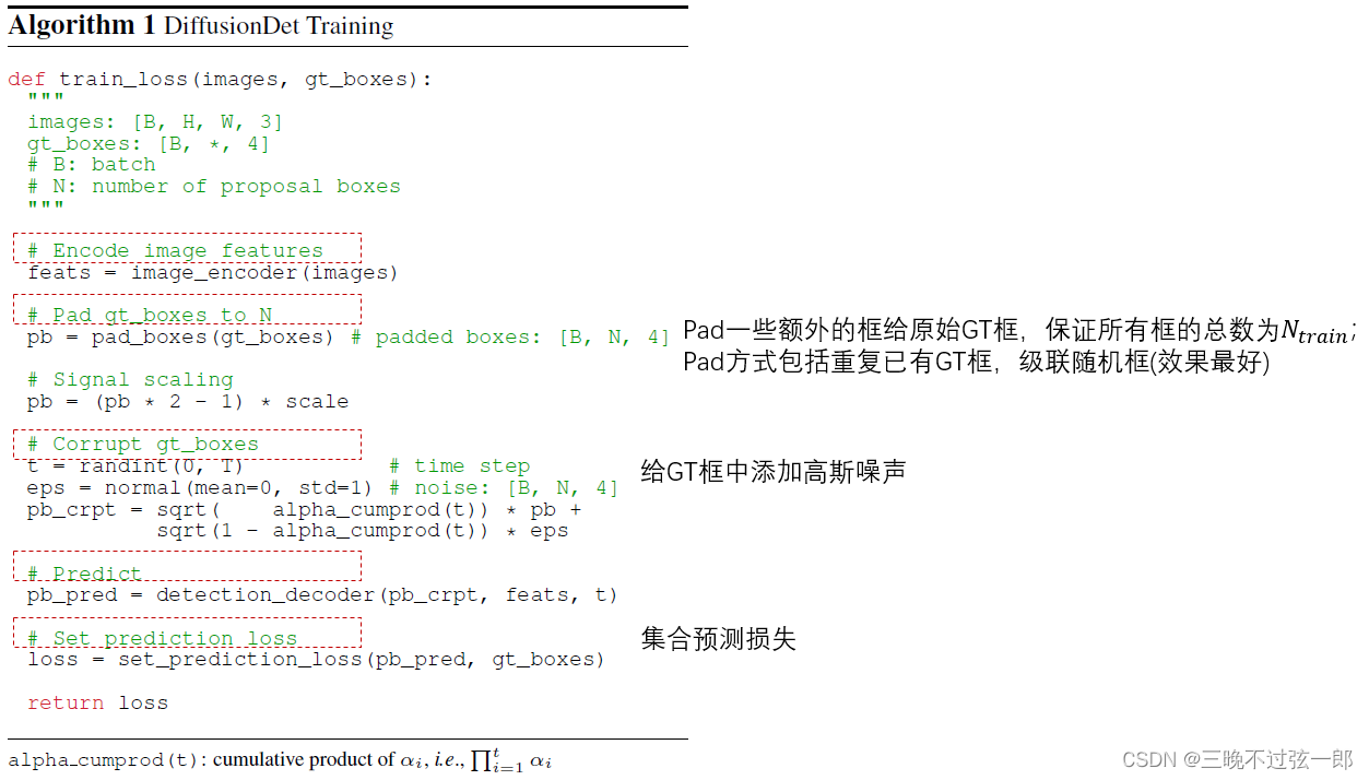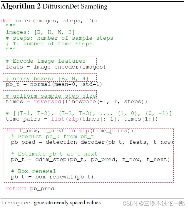 推理过程的伪代码如下图所示,即降噪得到目标框