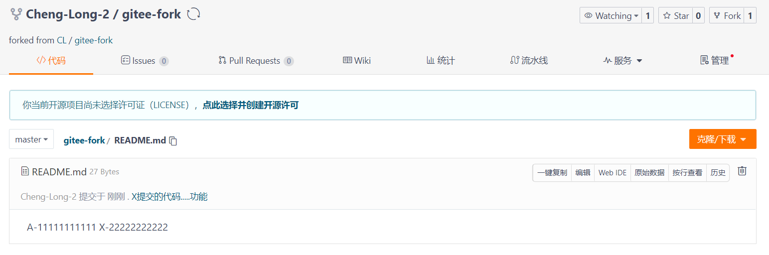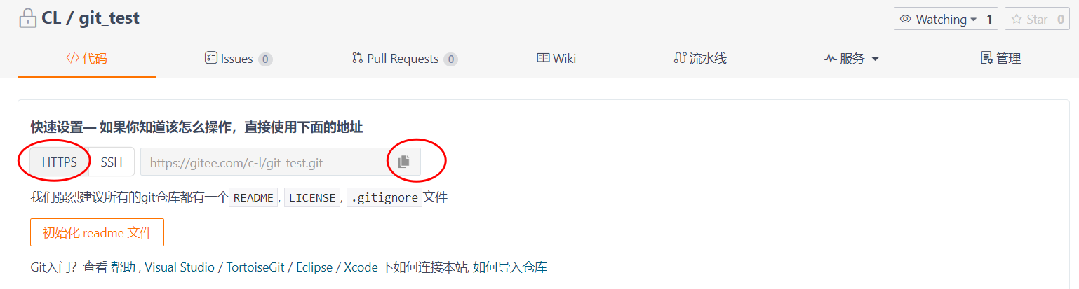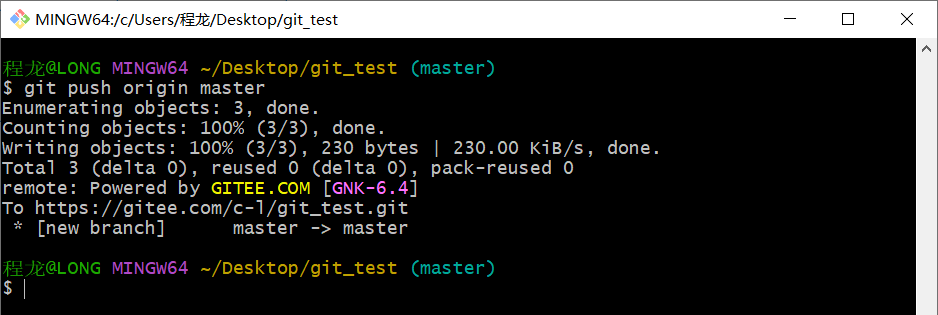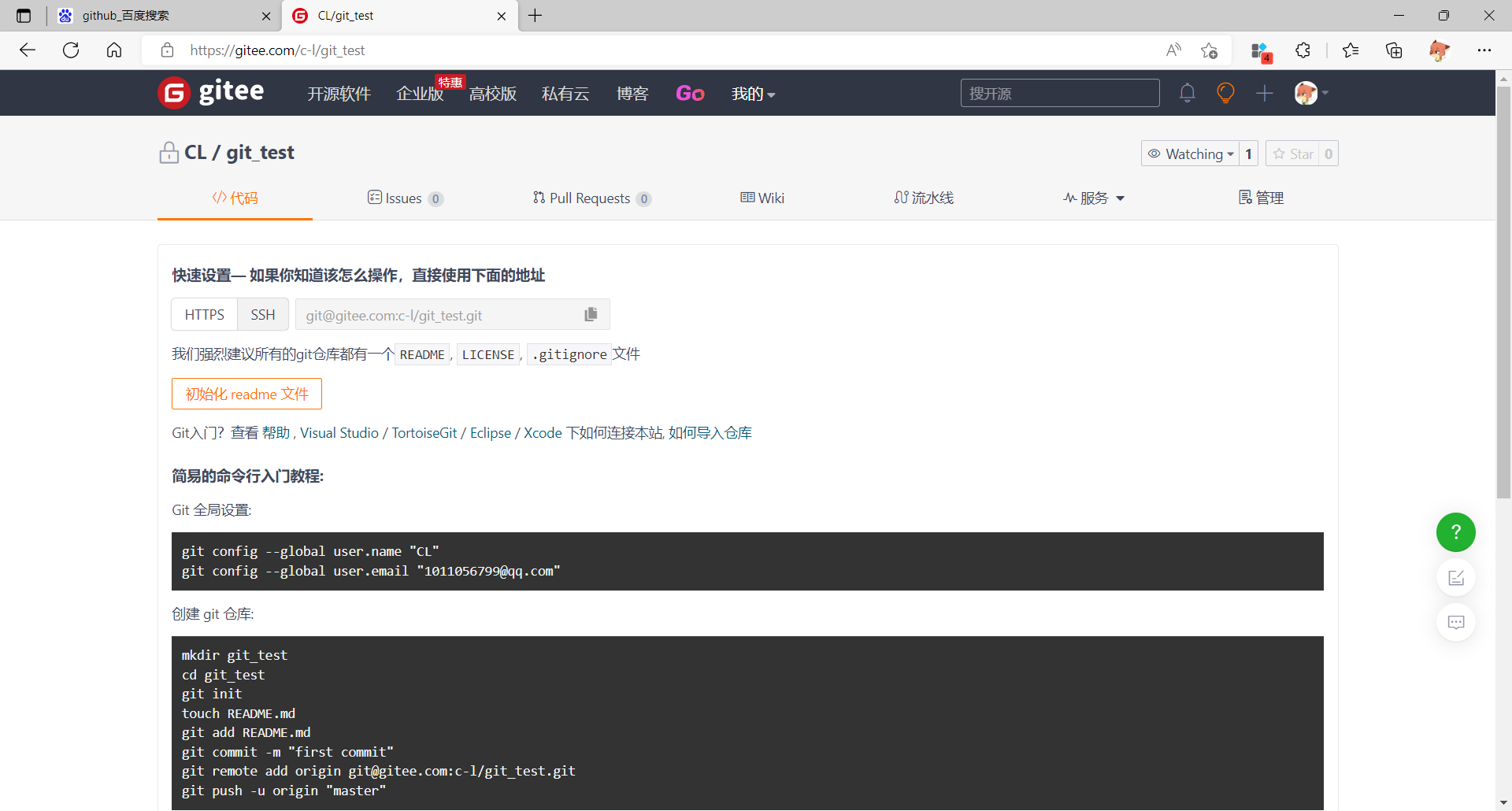 在Gitee账户中自动创建了一个远程仓库