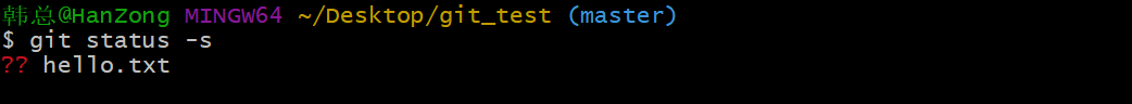 也可以使用git status -s使输出信息更加简洁