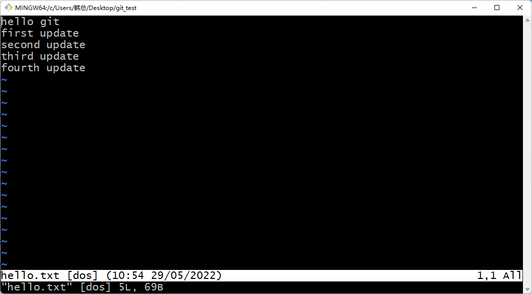 执行vim hello.txt 命令打开一个新文件,添加内容后保存退出