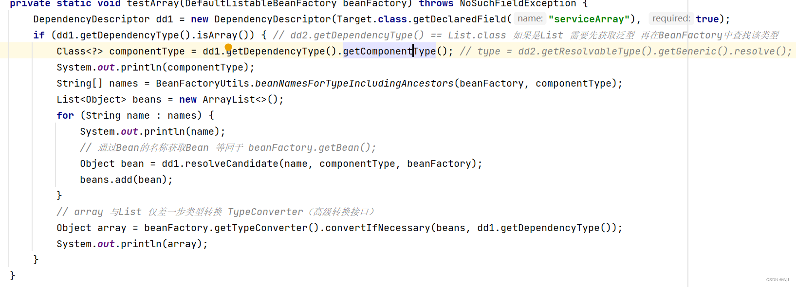 - Object array = beanFactory.getTypeConverter().convertIfNecessary(beans, dd1.getDependencyType());