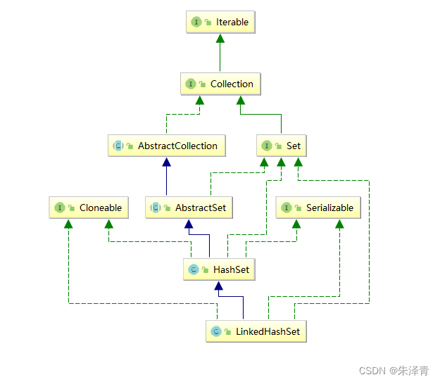 Set 接口只包含从 Collection 继承的方法,并扩展了禁止重复元素的限制。Set 还在 equals 和 HashCode 操作的行为添加了更强的契约,允许对 Set 实例进行有意义的比较,即使他们的实现类型不同。如果两个 Set 实例包含相同的元素,则他们相等。