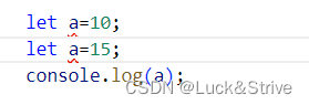 与var关键字不同的是,let关键字声明变量时,相同的作用域中不允许重复声明变量。例如下面这段代码: