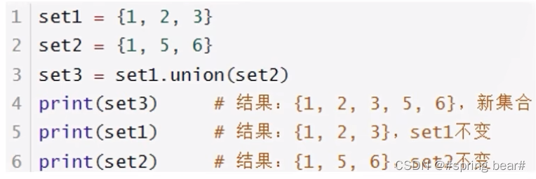- print(f"set1={set1},set2={set2},合并后集后的结果:{set3}")