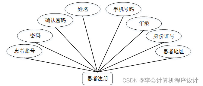 患者注册,在患者注册页面通过填写患者账号,密码,确认密码,姓名,手机号码,年龄,身份证号,患者地址等信息进行注册操作,如图5-2所示。