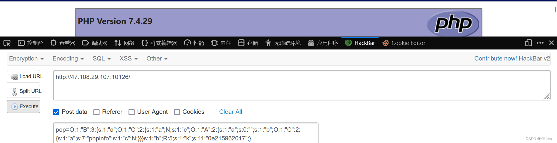 我们让$b去指向A类中$a的地址,就可以覆盖掉$a本来的变量了。打一下payload去触发phpinfo();