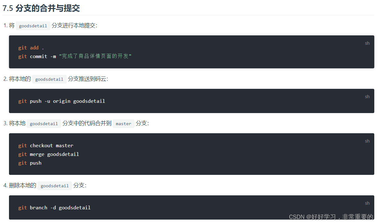 3》将本地 goodsdetail 分支中的代码合并到 master 分支: