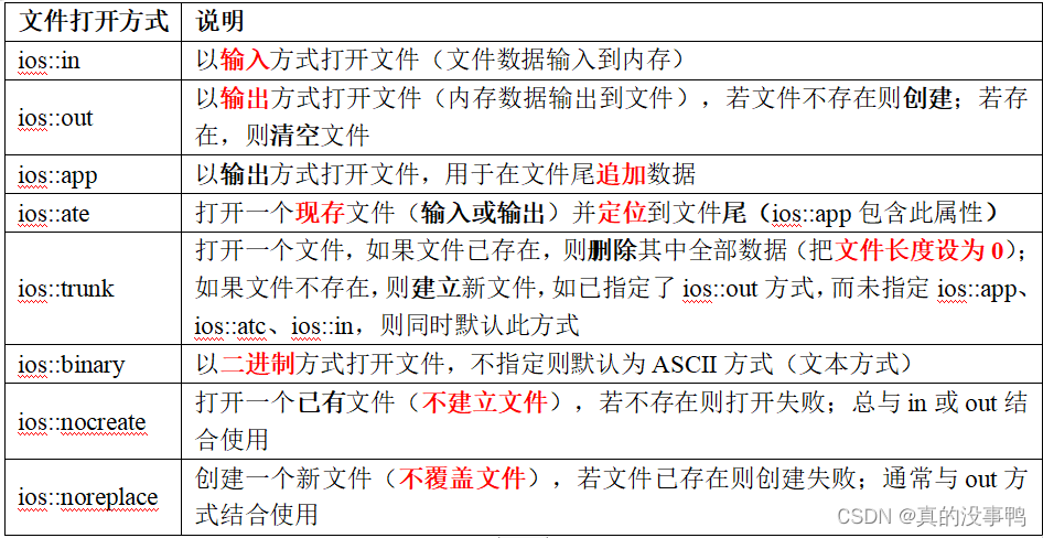 注意:在进行二进制文件读写时,文件打开模式必须是binary(二进制文 件)。
