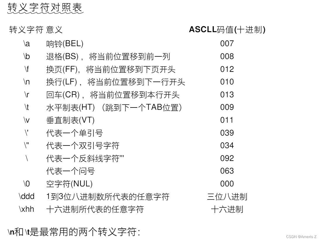 - printf("%s\n", "abc\\ndef");//想打印 abc\ndef 这个字符串时,也需要转义\为\\
