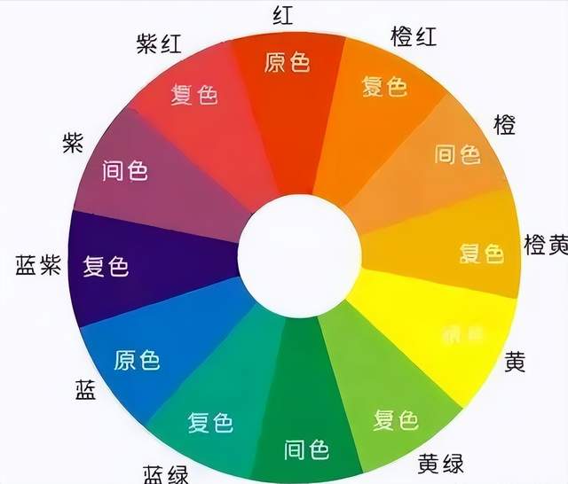 色相环有三原色、三间色和复色组成。三原色包括红黄蓝三种最基本的颜色;三间色包括绿紫橙,与原色形成对比;复色就是两个相邻颜色重合形成的颜色,包括橙红、橙黄、黄绿、蓝绿、蓝紫、紫红。复色在光度和饱和度方面会有更多的变化,可以丰富画面的颜色,让作品看起来更加厚重。