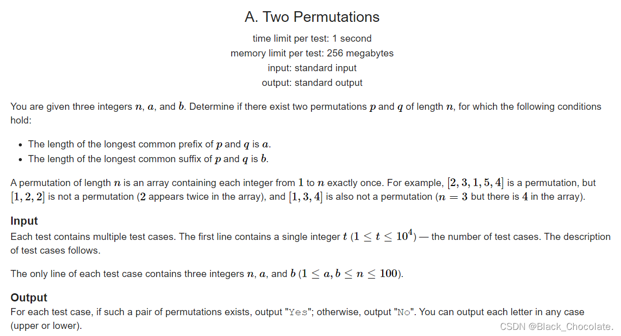 题意:定义了一个序列,给定了三个整数n,a,b。问能否构造两个长度为n的序列,使得它们的最长前缀的长度为a,最长后缀为b。能构造则YES,否则NO