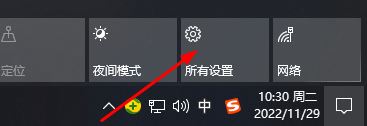 1、首先点击右下角的通知菜单,然后选择“所有设置”。