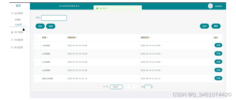 公告栏管理界面图如下所示。