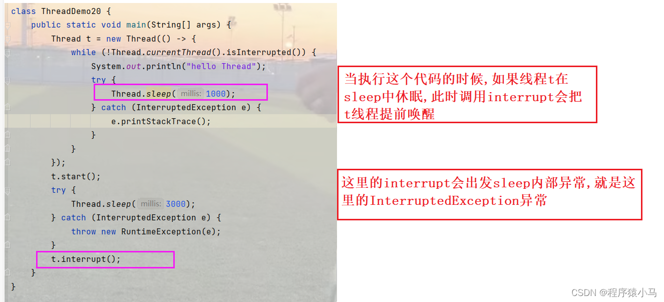 b.如果线程在进行sleep,就会触发异常,把sleep唤醒.