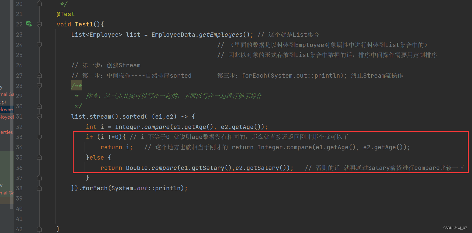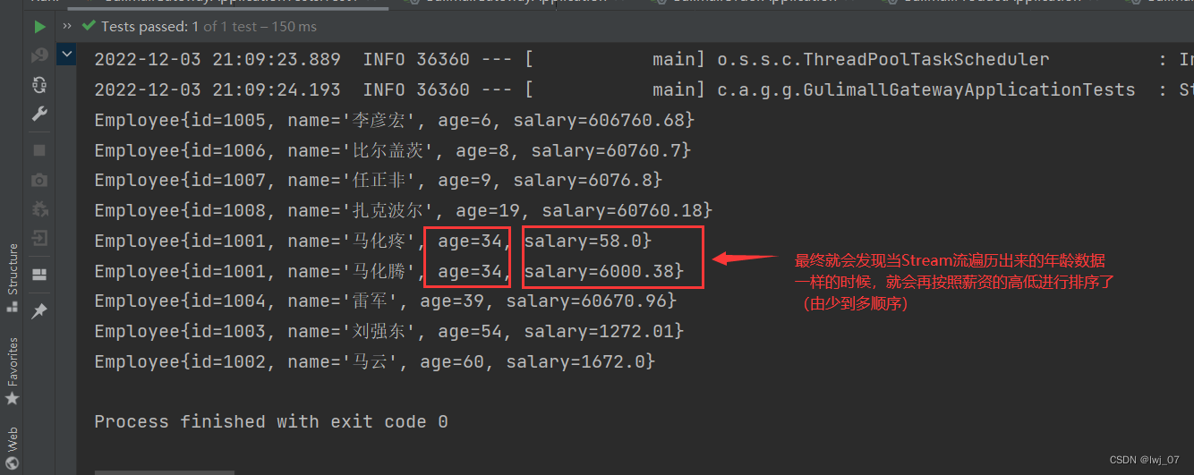 我们有可能会发现,上面通过排序Stream流遍历出List集合中的数据后,有可能我们根据age排序的时候,有的数据age是一样的,那么就不会再对这两个一样的进行排序先后位置了,那么我们该如何 再给如下:这两个age数据相同的数据进行一下排序呢 (整个先后顺序)?