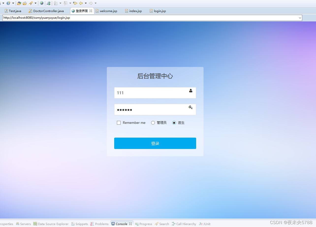 4. 运行项目,输入localhost:8080/ssm_yiyuanyuyue 登录