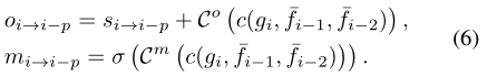 在第i个时间步,给定从第i个LR图像计算出的特征gi,计算上一个时间步特征fi-1,光流 s i→i-1为先前的帧,我们第一次用 s i→i-1 warp fi-1: