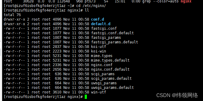 3.在/etc/nginx/conf.d目录下,有一个conf.d的目录,,进入conf.d的这个目录里,然后新建一个配置文件frontend.conf,一般我们配置的信息放在这里.