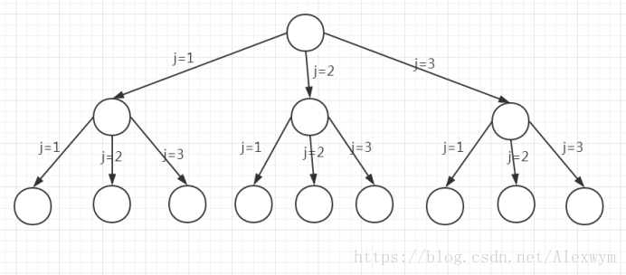 A.子集树。我们把行约束条件和其它约束条件放在一起,即认为每一行,棋子都有n个位置可以放置。于是它的空间结构如下: