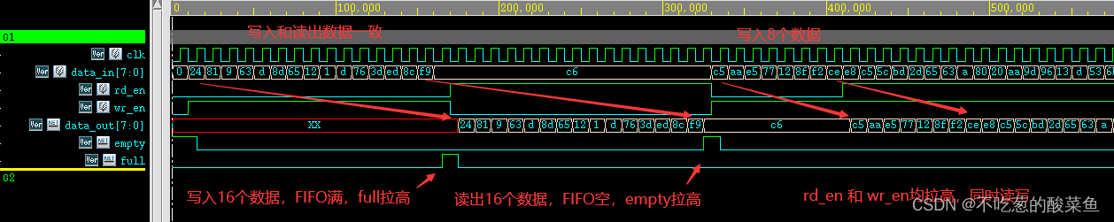总之,在读、写指针相等时,FIFO要么空要么满,所以需要对两种情况进行区分。