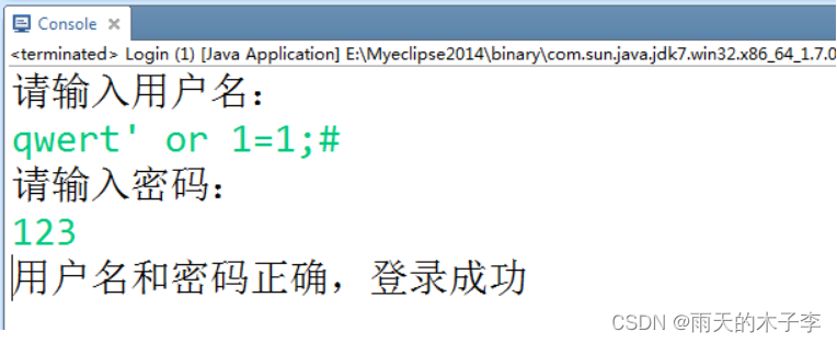 输入错误的用户名和密码,提示登录成功:产生了SQL注入