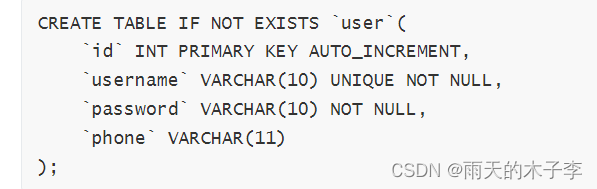 username,用户名,字符串类型、唯一、非空。